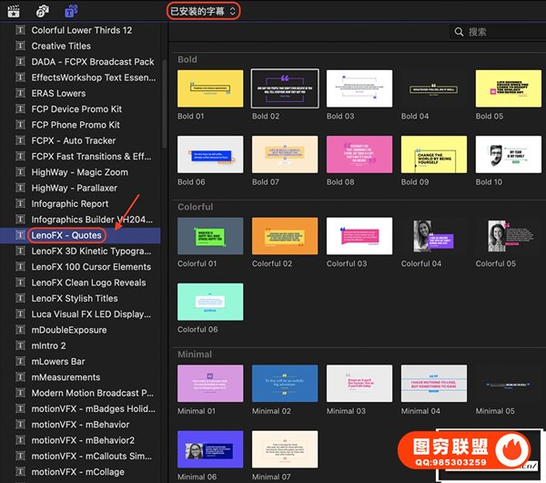 图穷联 » [FCPX插件]40个现代时尚引号段落引用标注文字标题动画 LenoFX -Quotes