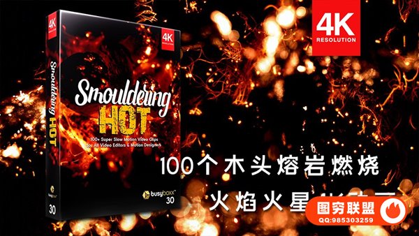 图穷联 » [4K视频素材]100个木材熔岩燃烧焖烧火焰火星4K动画 BBV30 -Smoulderi