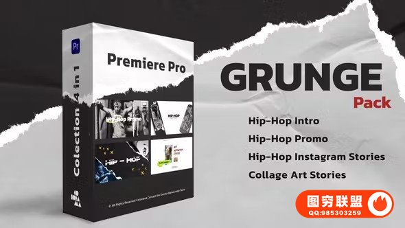 图穷联 » [PR模板]嘻哈摇滚创意纸张撕裂纹理元素展示宣传介绍动画 Grunge Pack Prem