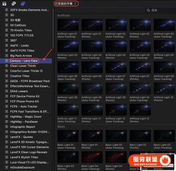 图穷联 » [FCPX插件]100组镜头耀斑光晕光效纹理叠加3D文字标题动画 Century Crea