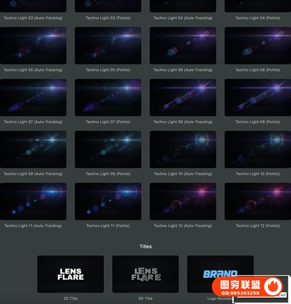 Century Creatives Lens Flare 拥有100多种镜头耀斑光效预设。类型:人工光效、基本光效、魔法光效、科技光效、自然光效等,可以根据项目的要求选择光效。还包含了3款3D文字动画预设,这些动画使用简单,只需拖放到时间线上进行必要的调整即可,点光源还可以设置跟踪点,包含演示视频教程。