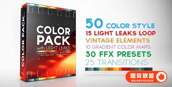 图穷联 » [AE模板]复古电影漏光光线转场过渡视频调色特效 Color Pack with Ligh