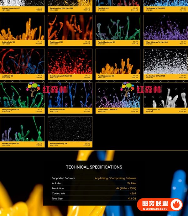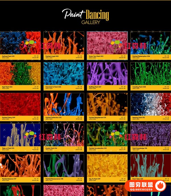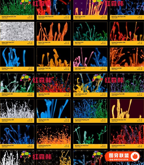 114个彩色油漆流体飞溅特写4K动画,瞬间创作艺术,异想天开的魅力,充满活力跳跃的效果,在剪辑中增添活力和有趣的情绪。 这些逼真的动画我们使用最新的Phantom 4K Flex相机进行有机拍摄。1000FPS 将在编辑时为您提供惊人的灵活性,使用这些剪辑为您的项目添加冲击力和强度。这些动画使用简单,只需拖放和混合。我们做了繁重的工作,以确保每个剪辑都易于您使用。无需任何插件,适用于VFX特效合成、画面叠加或背景中使用;增强画面观赏性。分辨率:4096*2304,4K高清;无透明通道(可修改混合模式去黑底透明叠加使用)。