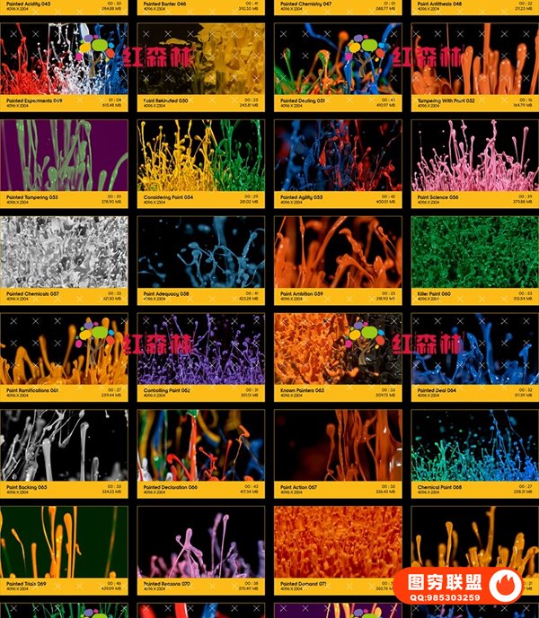 特别说明:此素材提供的是彩色油漆飞溅慢动作特效动画,没有预览视频中的实拍人物风景文字图片等素材,也没有AE模板工程。