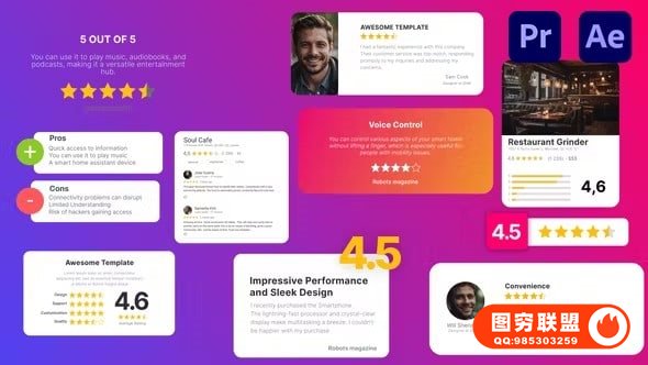 图穷联 » [AE/PR模板]10个商家客户服务评级打分评价动画 Review Mockups