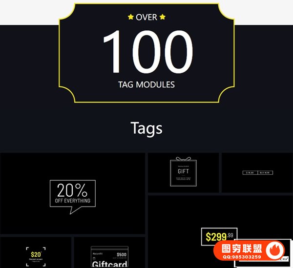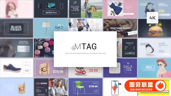 mTag 拥有超过100个FCPX专属的促销主题模块,包含商品价格标签动画、文字标题、图标ICON、背景动画、商品展示等元素,使用方便的控制器直接在屏幕上轻松排列内容。引人注目价格和销售工具展示,充满了专为宣传您的产品而设计的出色设计。文字、字体、占位符、颜色、大小位置等属性可修改。
