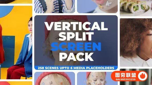 图穷联 » [AE模板]258个垂直竖屏动态画面拼贴视频分屏动画 Vertical Split Scr