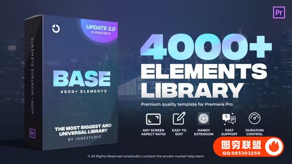 [PR脚本]4000个视频无缝转场文字标题图形排版设计音效调色分屏特效预设包 BASE Transitions and Motion Graphics v3.0