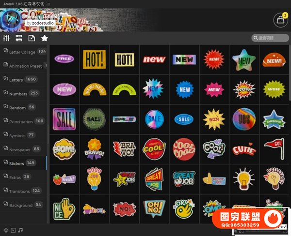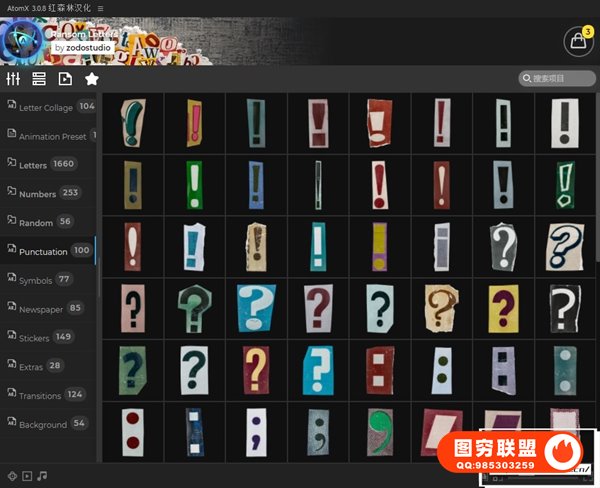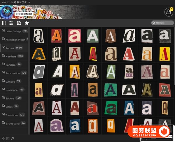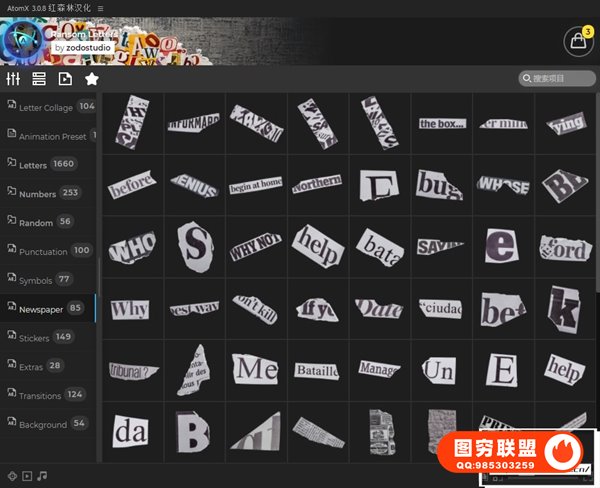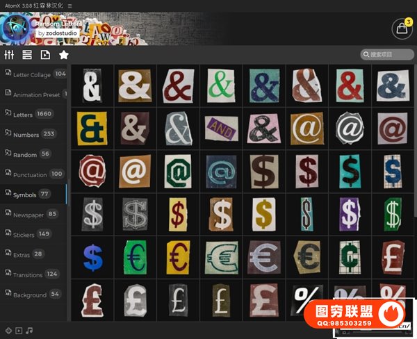 如果您正在为您的项目寻求独特性和新鲜视角,那这套预设是完美的选择,有超过2500个元素供您自由选择。多种字母、数字、拼贴、标点符号、报纸、贴纸、过渡、背景、等其他元素,可自由组合成很多动画。使用AtomX脚本调用预设,可视化预览,直接使用于时间线。