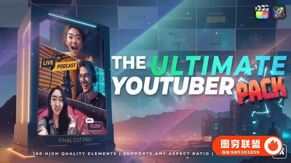 [FCPX插件]100组社交媒体Logo标志转场字幕标题动画视频创作工具包 The Ultimate YouTuber Pack