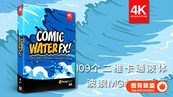[4K视频素材]109个二维卡通液体水流波浪翻腾MG特效动画 +AE模板 BBV66 – Comic Water FX