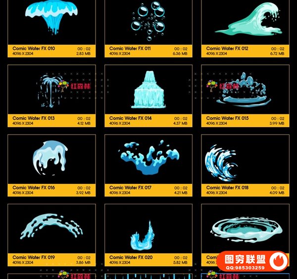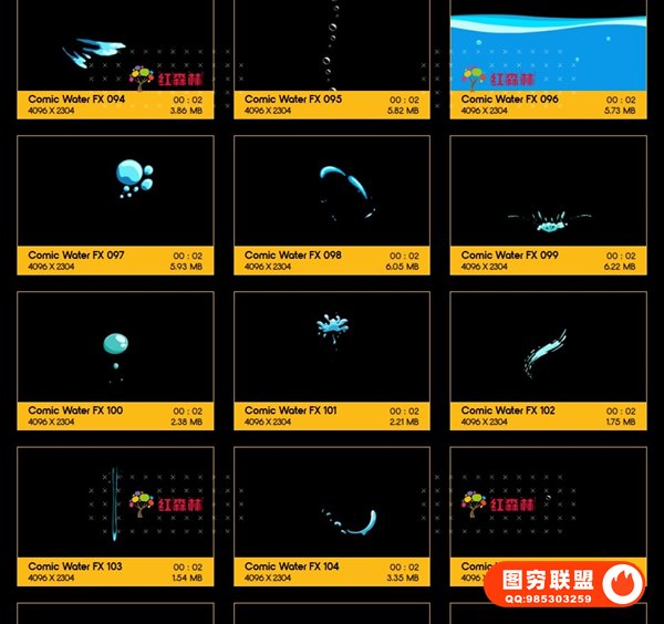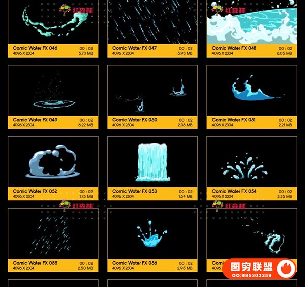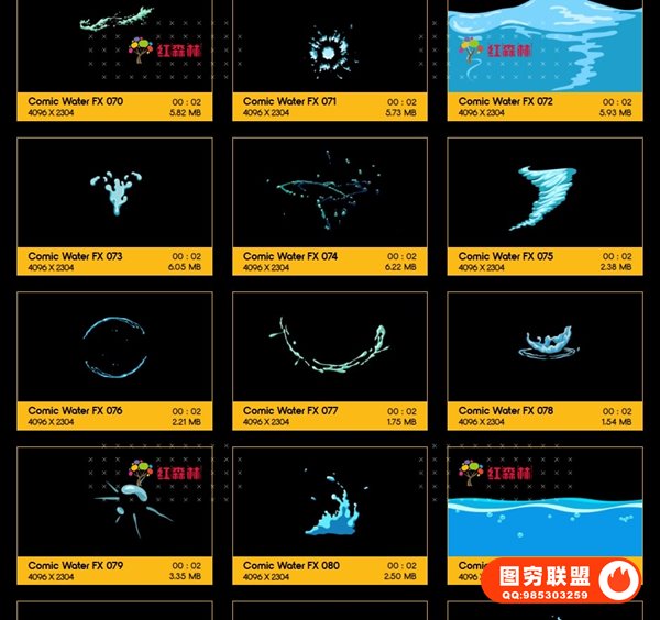 Comic Water FX包含109组卡通风格液体流体各种水流特效视频素材。有趣,欢快,活泼的动画,非常适合从文本显示到实际电影合成的所有内容。添加即时焦点和乐趣,众多的动画非常适合为您都项目添加MG特效氛围。这些动画使用简单,只需拖放和混合。我们做了繁重的工作,以确保每个剪辑都易于您使用。无需任何插件,适用于VFX特效合成、画面叠加或背景中使用;增强画面观赏性。分辨率:4096*2304,4K高清;它们都包含透明通道,可直接与您的视频叠加使用。还提供了每个单独动画的AE模板工程。