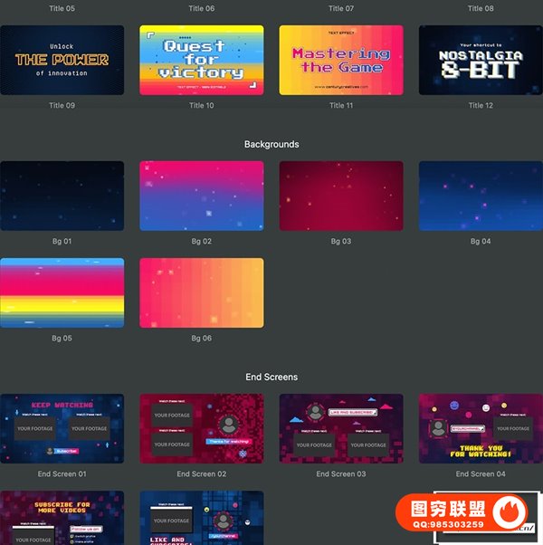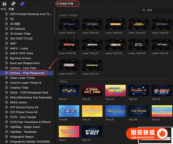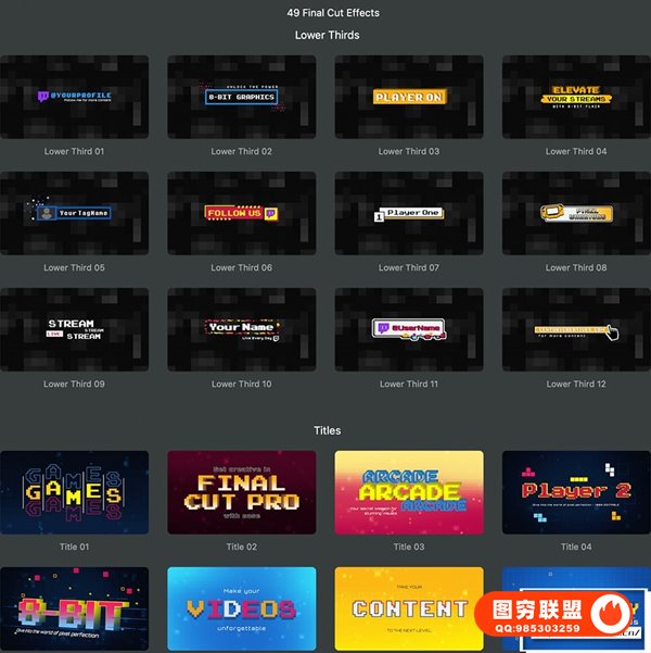 图穷联 » [FCPX插件]49种复古8Bit像素化游戏文字标题字幕条背景边框动画 Century -
