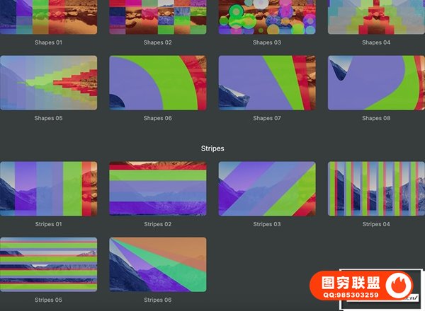 图穷联 » [FCPX插件]30种创意彩色卡通液体霓虹条纹图形过渡转场预设动画 Colorful Tr