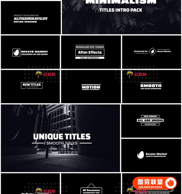 Minimalism – Kinetic Text and Minimal Title Animation 包含了200多种时尚简约的文字动画预设,包含出入动画,替换文字即可,使用简单,包含视频教程。有多种分辨率可以自由调整(兼容 4K、全高清、Square 和 Instagram Stories 分辨率视频)您可以控制动画的持续时间(开头 – 结尾)无需额外插件。