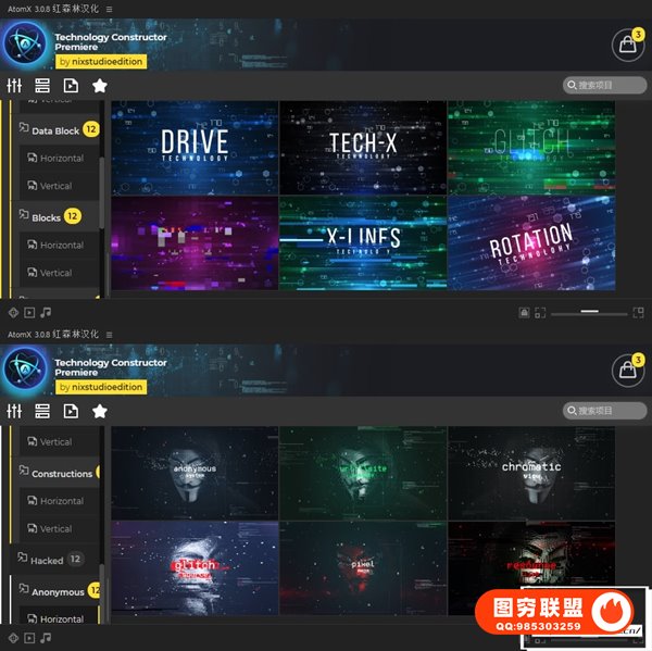 图穷联 » [PR脚本]660个科技感HUD信息数据故障场景UI界面元素动画预设 Technology