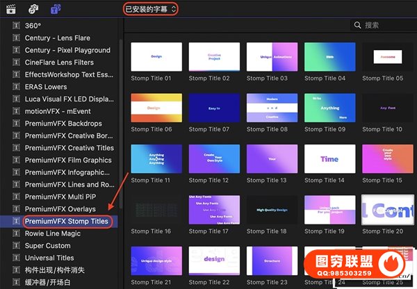 [FCPX插件]30种时尚活力快节奏滚动文字标题排版动画 PremiumVFX – Stomp Titles 汉化版