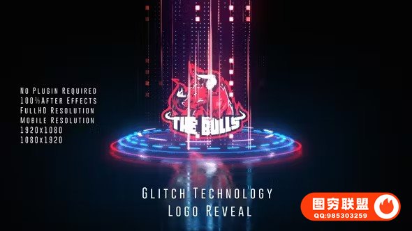 图穷联 » [AE模板]时尚科技风格抽象数字故障Logo标志展示动画 Glitch Technolog