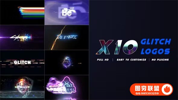 图穷联 » [AE模板]10个抖动故障效果游戏LOGO标志开场动画 X10 Glitch Logo