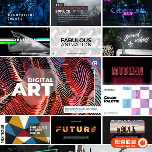 共包含101个版式场景:50排版幻灯片+51幻灯片放映,可与Premiere Pro CC 2020及更高版本配合使用。最高4k,完全可调整大小,无任何质量损失。包含免费的字体下载链接,易于使用,包含带有gif预览页的html文件,方便查找。