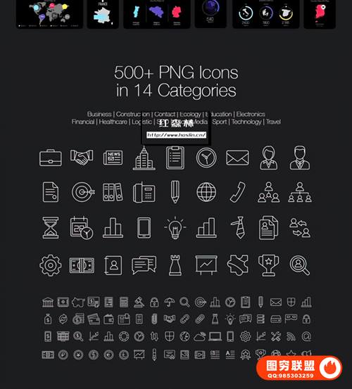 12个类别中的500+个PNG图标