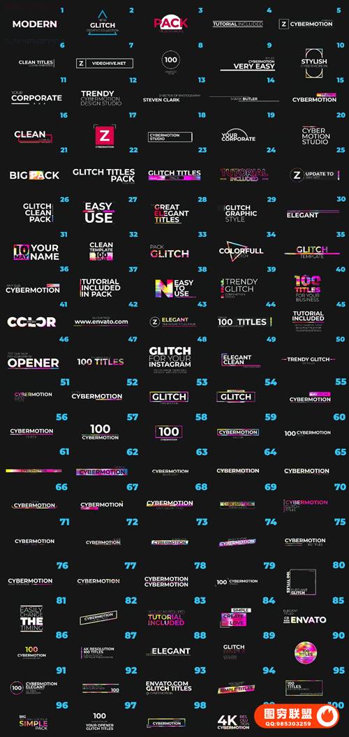图穷联 » [PR预设]100个故障干扰文字标题动画预设 Glitch Titles MOGRT
