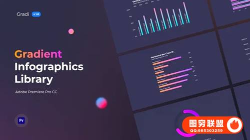 Gradi – Gradient Infographics MOGRT 是一套支持Adobe Premiere Pro CC 的信息图表库,包含 10 个类别和 90 多个图表和组件,需要Adobe Premiere Pro CC 2019 或更高版本。