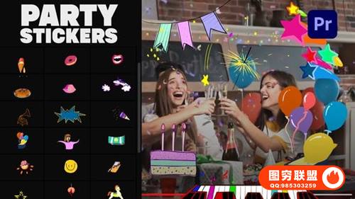 图穷联 » [PR预设]25个手绘卡通可爱有趣综艺贴纸跳跃动画 Animated Party Stic