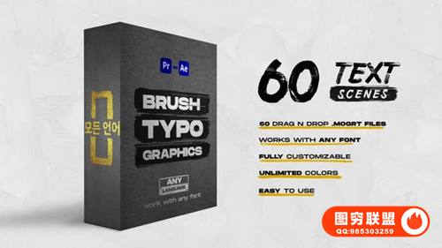 图穷联 » [PR预设]60个可拖放水墨笔刷画笔呼出文字标题动画Mogrt预设 Brush Titles