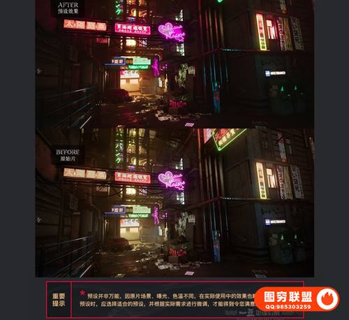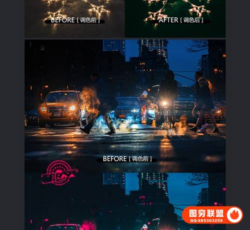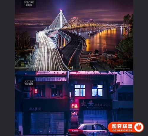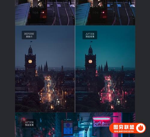 图穷联 » [调色预设]50款城市景观夜景赛博朋克效果调色预设LR/PS\\PR/FCPX滤镜LUTs预