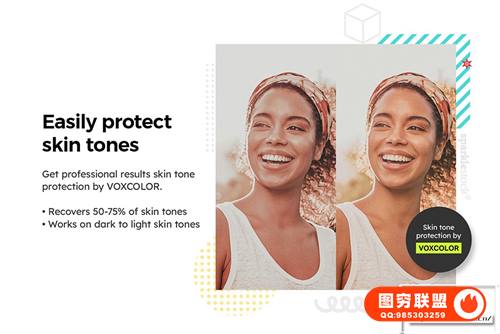 ✔️借助VOXCOLOR柔滑色调和肤色保护增强功能,获得专业效果。