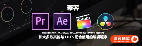 Photoshop、After Effects、Premiere Pro、Lightroom Classic、Final Cut Pro X、Avid Media Composer、DaVinci Resolve、Edius、Sony Vegas、PowerDirector、Cyberlink Color Director、Capture One、The Foundry Nuke、Wondershare Filmora、Asimilate Scratch、SpeedGrade、Affinity Photo、on1 Photo RAW、HitFilm、Video LUT、LumaFusion、3DLUT Mobile等所有可以加载LUT的软件。