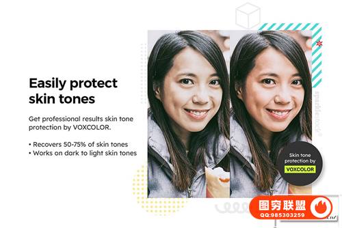 ✔️ 使用 VOXCOLOR SmoothTones 和肤色保护增强专业效果。