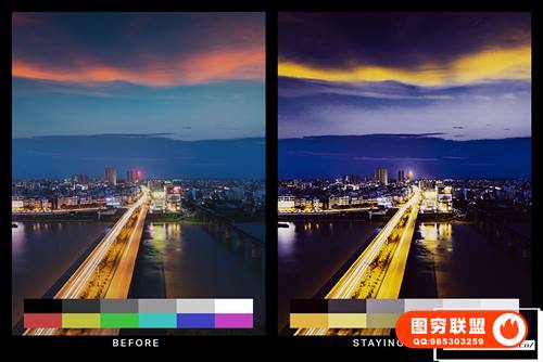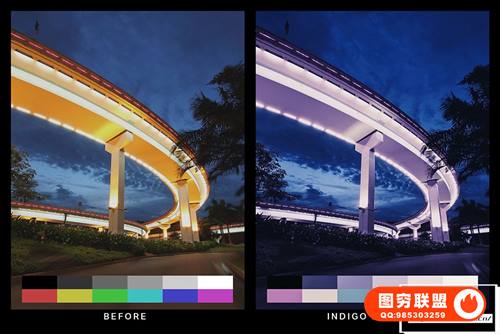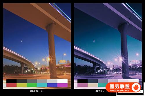 图穷联 » [调色预设]50个城市夜景赛博朋克紫罗兰色Lightroom预设LUT视频调色预设 50