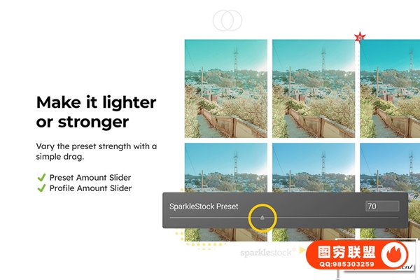 ✔️ 可调节强度,支持 Lightroom 的“预设量”滑块