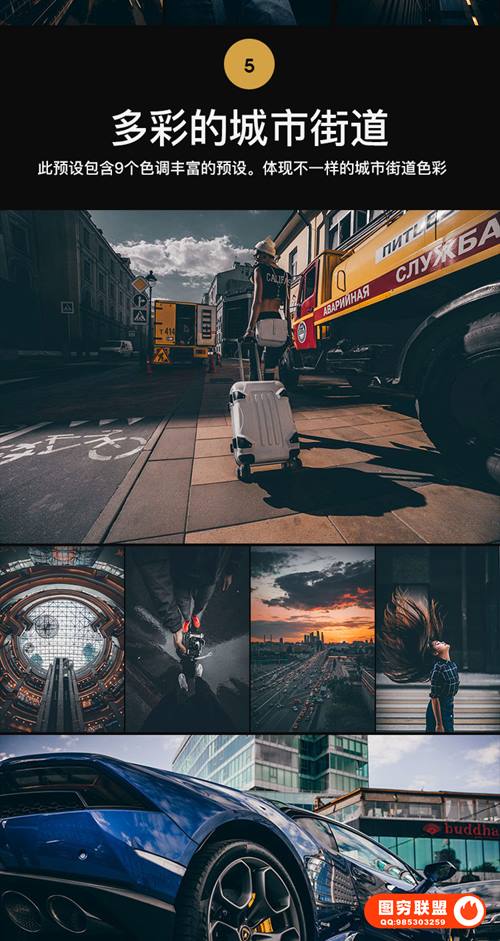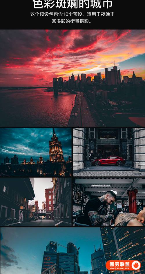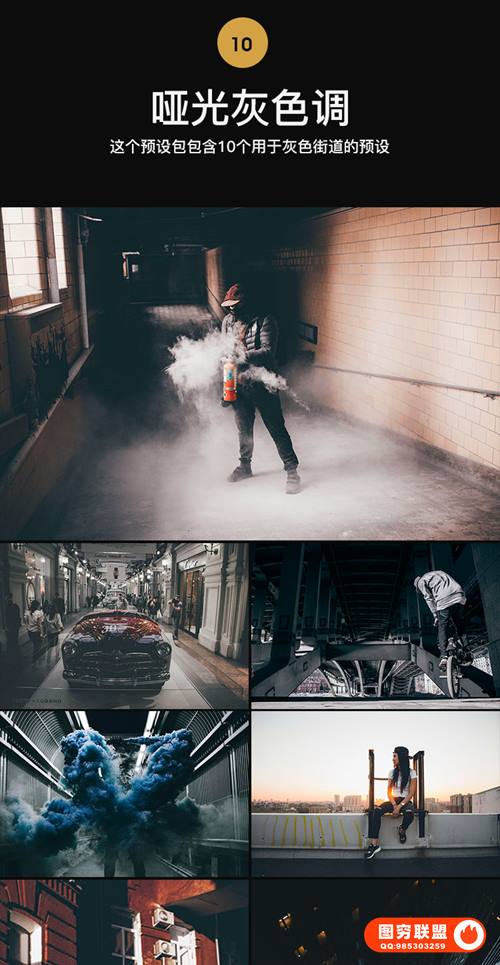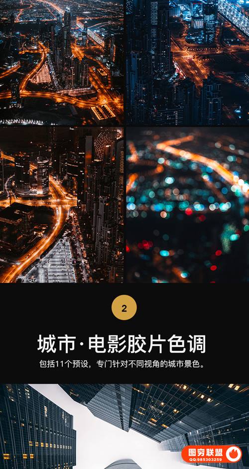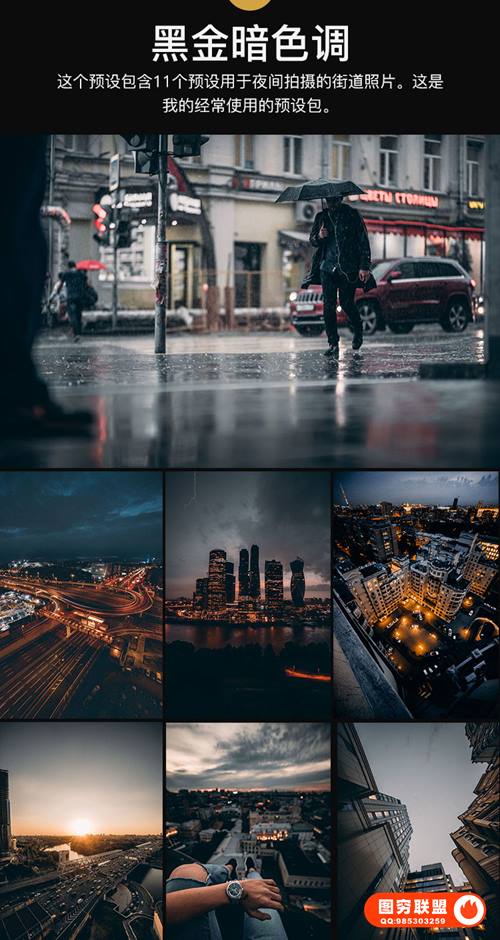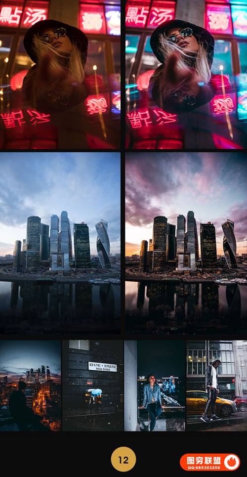 图穷联 » 265款LR/PS预设工业风城市黑金夜景旅街拍胶片人像PR/AE/FCPX/Luts调色