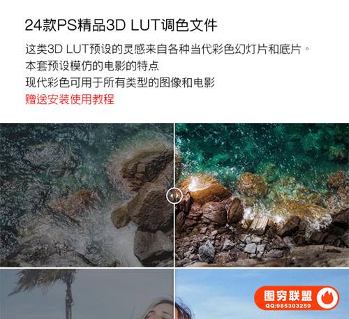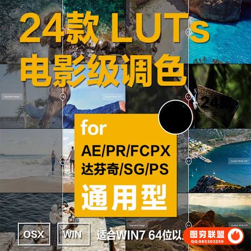 兼容软件:FCPX/AE CS6及以上、 Premiere CC及以上、 PS CS6及以上、达芬奇/SpeedGrade/等全部可以加载LUTs的软件