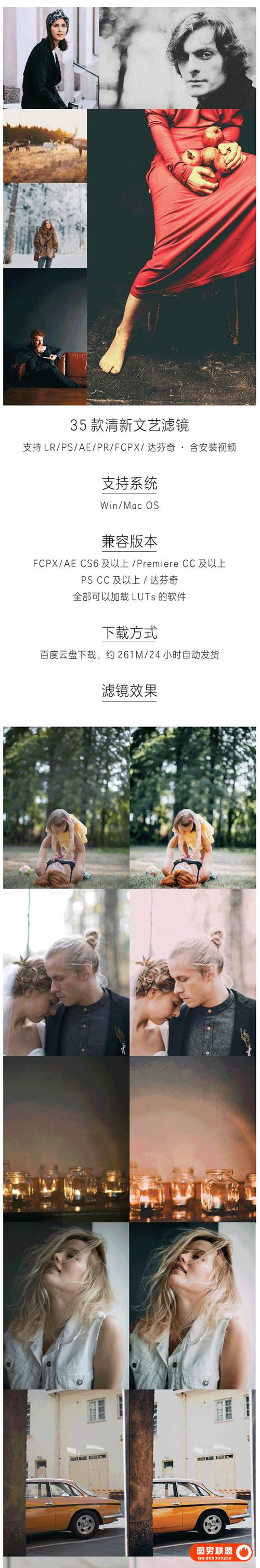 兼容软件:LR 4以上、PS ACR7.0及以上、FCPX/AE CS6及以上、 Premiere CC及以上