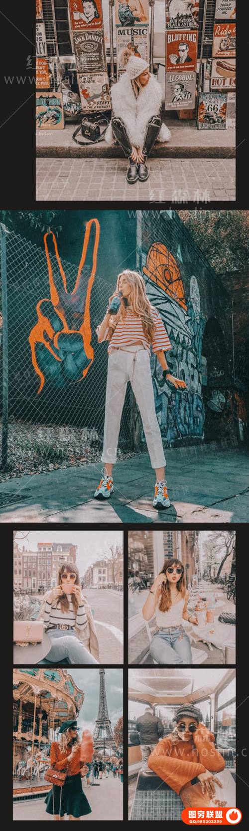图穷联 » [调色预设]6款欧美ins复古焦糖色 LR预设PS人像街拍旅拍PR/FCPX调色手机滤镜L