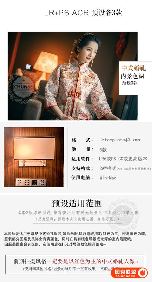 图穷联 » [PS/LR预设]3款中式婚礼LR预设中国风红色传统秀禾服人像PS.ACR预设