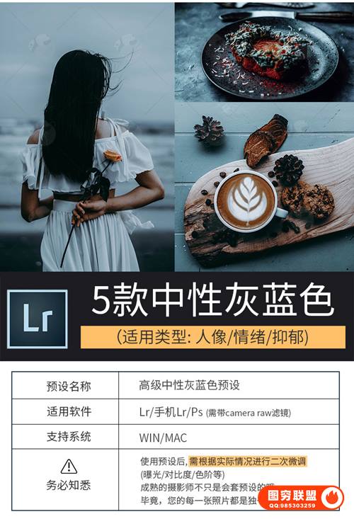 图穷联 » [LR/PS预设]5款LR预设高级中性灰抑郁蓝色lightroom预设暗黑调色手机人像PS