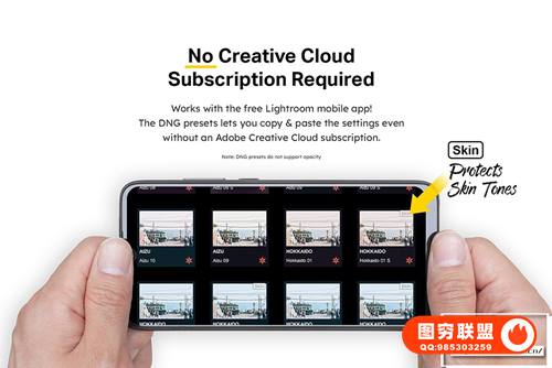 无需订阅 Creative Cloud:您将获得原生和 DNG 移动预设!即使没有订阅,您也可以使用 DNG 预设。