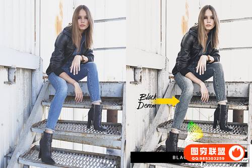黑色(10个预设)-一键式将牛仔布变成灰色/黑色。