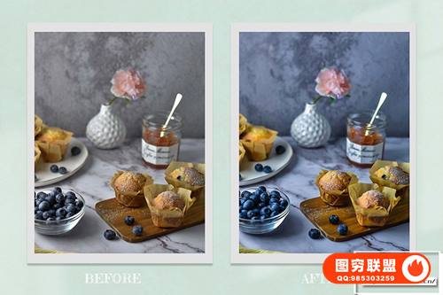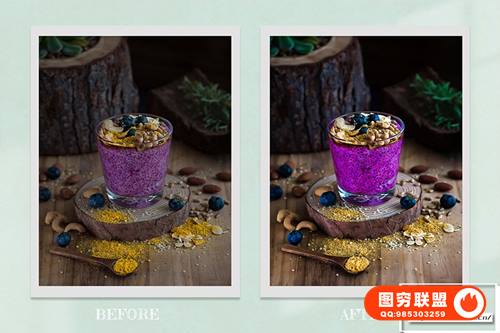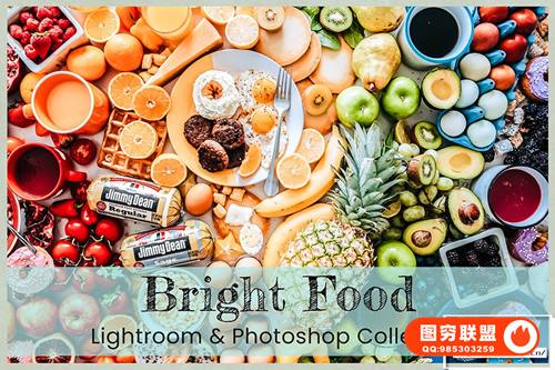 关于产品:6 个明亮通透淡雅美食摄影食物照片预设 Lightroom 预设和 Lightroom 移动预设 Photoshop 动作 及ACR 预设,INS风鲜艳的色彩校正,看起来健康且充满食欲。