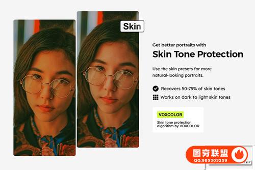 ✔️ 使用 VOXCOLOR 的肤色保护算法获得自然的效果。
