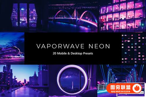 [调色预设]20个夜色霓虹蒸汽波魔幻色彩Lightroom预设LUT视频调色预设 20 Vaporwave Neon LR Presets