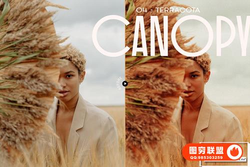 Canopy预设系列具有 12 个泥土色调预设,适用于肖像、美术和时尚编辑摄影。