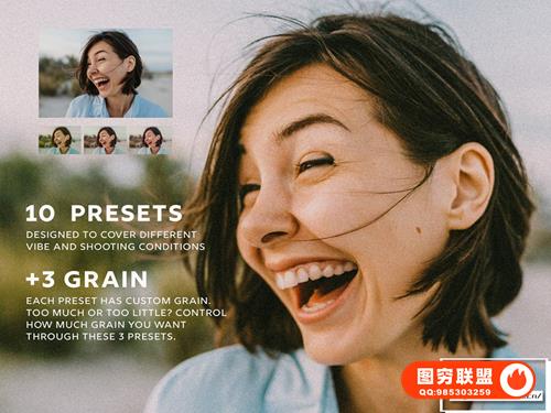 这个包包含 10 种预设变体以及 3 种颗粒设置。适用于台式机和移动设备,电影外观模拟 LR 预设,添加复古美学,复古外观。