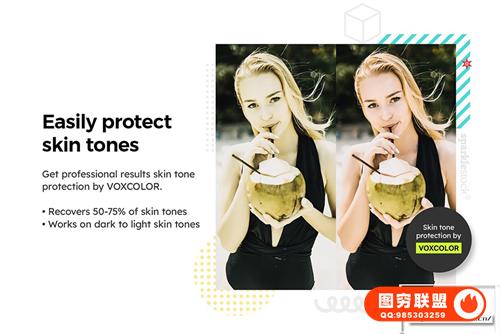 ✔️ 使用 VOXCOLOR SmoothTones 和肤色保护增强专业效果。
