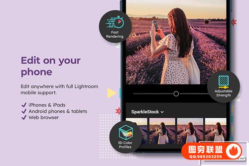 无论您身在何处,都可以随身携带这些预设。借助完整的 Lightroom 移动支持,您可以通过手机拍摄、编辑和发布照片。它们渲染速度快(由 Lightroom 配置文件制成)并且非常易于使用。